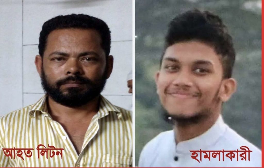 আহত অবস্থায় বাঁদিকে বরিশাল শেরেবাংলা মেডিকেল কলেজ হাসপাতালে ভর্তি করা হয়।