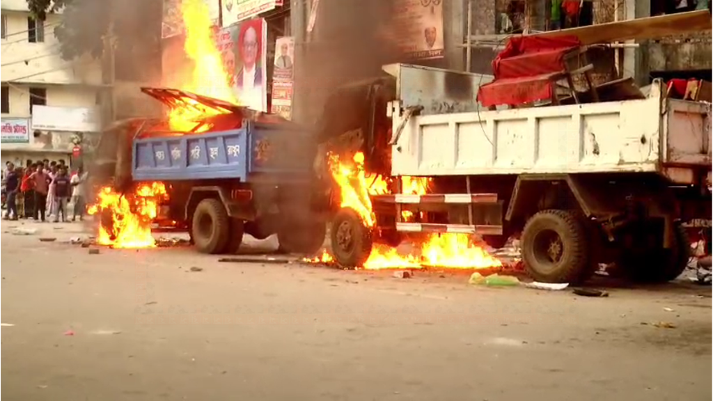 ভোলায় উচ্ছেদ অভিযানের তিন গাড়ি পুড়িয়ে দিলেন ব্যবসায়ীরা