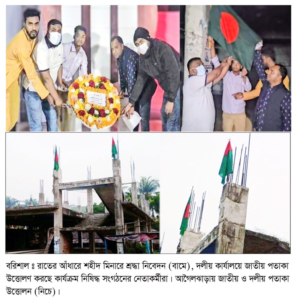 বরিশাল জেলার বিভিন্ন উপজেলায় শহীদ মিনারে আওয়ামী লীগের শ্রদ্ধা নিবেদন, পোড়া কার্যালয়ে পতাকা উত্তোলন