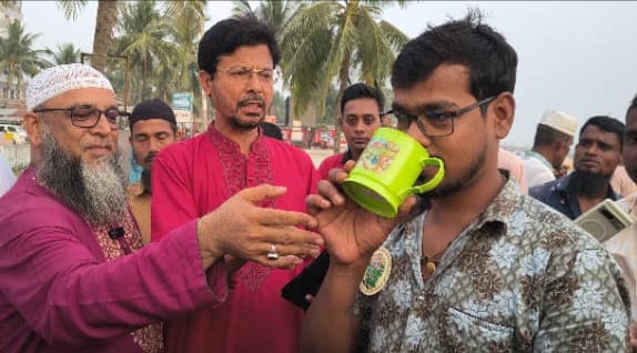 কুয়াকাটায় রাসমেলায় আগত পূণার্থী ও পর্যটকদের জন্য সুপেয় পানি বিতরণ