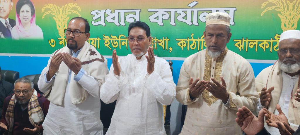 ঝালকাঠির কাঠালিয়ার আমুয়া ইউনিয়ন বিএনপির কার্যালয়ে শনিবার সন্ধ্যায় বিএনপির চেয়ারপার্সন ও সাবেক প্রধানমন্ত্রী বেগম খালেদা জিয়ার রোগ মুক্তি কামনায় দোয়া মোনাজাত অনুষ্ঠিত হয়েছ। বিএনপির জাতীয় নির্বাহী কমিটির ভাইস চেয়ারম্যান ও বরগুনা ২ বামনা পাথরঘাটা