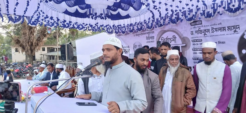 পটুয়াখালী-২ (বাউফল) আসনের ১১ দলীয় নির্বাচনী ঐক্য জোটের প্রার্থী ও জামায়াতে ইসলামী কেন্দ্রীয় কর্মপরিষদ সদস্য ড. শফিকুল ইসলাম মাসুদ অভিযোগ করেছেন, জামায়াতের ক্রমবর্ধমান জনপ্রিয়তায় ঈর্ষান্বিত হয়ে একটি মহল পরিকল্পিতভাবে দলকে বিতর্কিত করার ষড়যন্ত্রে লিপ্ত হয়েছে। তিনি বলেন, এই ষড়যন্ত্রের অংশ হিসেবে আমিরে জামায়াতের সামাজিক যোগাযোগমাধ্যমের আইডি হ্যাক করে নারীদের বিষয়ে আপত্তিকর ও বিতর্কিত মন্তব্য প্রচার করা হয়েছে। অথচ ওই সময়েই এক নারীকে ধর্ষণের দায়ে অভিযুক্ত একজন কর্মীকে গ্রেপ্তার করা হয়েছে—যা প্রমাণ করে জামায়াত অপরাধের বিরুদ্ধে কঠোর অবস্থানে রয়েছে। সোমবার (২ ফেব্রুয়ারি) বিকেল ৫টায় বাউফল উপজেলার সদর ইউনিয়নের দিলবিলাস মাধ্যমিক বিদ্যালয় মাঠে ১১ দলীয় নির্বাচনী ঐক্য জোট আয়োজিত এক বিশাল নির্বাচনী সমাবেশে প্রধান অতিথির বক্তব্যে তিনি এসব কথা বলেন। ড. মাসুদ বলেন, “হুমকি-ধমকি দিয়ে মাঠ বা বাজার দখল করা যায়, কিন্তু মানুষের হৃদয় দখল করা যায় না। মানুষের হৃদয় জয় করতে হলে ভালোবাসা ও আস্থা অর্জন করতে হয়।” দুর্নীতিমুক্ত রাষ্ট্র গঠনের প্রত্যয় ব্যক্ত করে তিনি বলেন, “চাঁদা ও দুর্নীতিমুক্ত রাষ্ট্র প্রতিষ্ঠা করা গেলে সাধারণ মানুষের জীবনযাত্রার ব্যয় ২৫ থেকে ৩০ শতাংশ পর্যন্ত কমে আসবে। মানুষ কৃষি বা ফ্যামিলি কার্ড নয়—এমন একটি কার্ড চায়, যা দেখলেই চাঁদাবাজরা পালিয়ে যাবে।” তিনি আরও বলেন, “আল্লাহ কবুল করলে আমরা চাঁদাবাজমুক্ত একটি বাউফল গড়ে তুলব।” দুর্নীতি ও মাদকের বিরুদ্ধে কঠোর অবস্থানের কথা জানিয়ে ড. মাসুদ বলেন, “জান্নাতের লোভ আছে বলেই আমরা দুর্নীতি করতে পারি না। দুনিয়ার কোনো লোভের কাছে মাথা নত করি না। একটি গুলি একজন মানুষকে হত্যা করতে পারে, কিন্তু এক পোটলা মাদক একটি পরিবার, সমাজ ও রাষ্ট্র ধ্বংস করে দেয়। আল্লাহ কবুল করলে ৬০ দিনের মধ্যে মাদকমুক্ত এবং ৯০ দিনের মধ্যে দুর্নীতিমুক্ত বাউফল গড়ে তুলব—ইনশাল্লাহ।” তরুণ ও যুবকদের উদ্দেশ্যে তিনি বলেন, “তোমরা ইতোমধ্যে নারীদের ইজ্জত ও নিরাপত্তা রক্ষায় ভূমিকা রেখেছ। এখন তোমাদের মেধা ও যোগ্যতার সঠিক ব্যবহার নিশ্চিত হলে কর্মসংস্থানের দায়িত্ব রাষ্ট্র গ্রহণ করবে। কাউকে দ্বারে দ্বারে ঘুরতে হবে না।” আসন্ন নির্বাচন প্রসঙ্গে তিনি বলেন, “এ নির্বাচন শুধু একটি নির্বাচন নয়—এটি দেশ ও জাতির স্বাধীনতা ও আদর্শ রক্ষার নির্বাচন। রাসূল (সা.)–এর যুগে যেমন তীর-ধনুকের যুদ্ধ হয়েছিল, আজ আমরা ব্যালটের যুদ্ধে অংশ নিচ্ছি।” ভোটাধিকার রক্ষার বিষয়ে তিনি হুঁশিয়ারি দিয়ে বলেন, “আমাদের বাউফলে সাতজন শহীদ হয়েছেন এবং অর্ধশতাধিক মানুষ পঙ্গুত্ববরণ করেছেন। কেউ যদি ভোটকেন্দ্র দখল করতে আসে, আমরা জীব