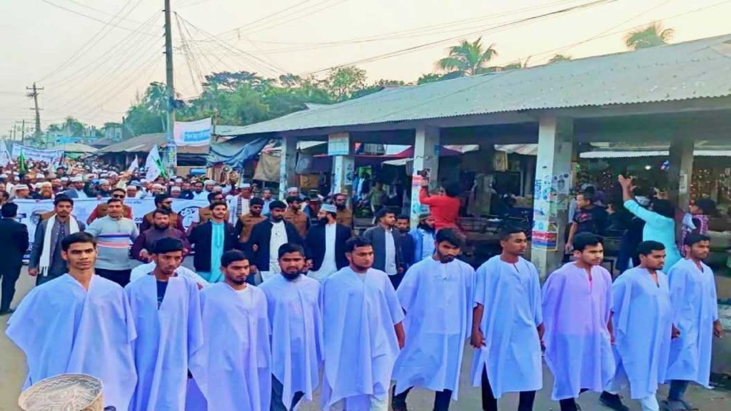 ভোলায় কাফনের কাপড় পরে দাঁড়িপাল্লার মিছিল