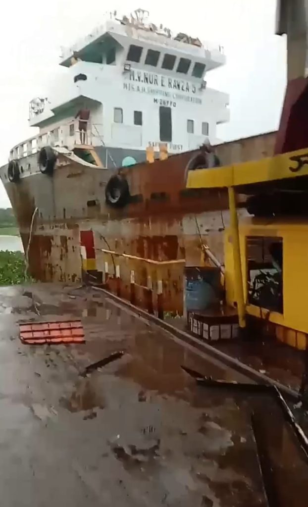 এ সময় সড়ক ও জনপথ বিভাগের একটি ফেরি জাহাজের ধাক্কায় ব্যাপক ক্ষতি গ্রস্থ হয়েছে। ফেরির সাথে বাধা নদী পারাপারের জন্য সুমাইয়া নামে একটি ইঞ্জিন চালিত ট্রলার ডুবে যায়। তবে কোন হতাহতের ঘটনা ঘটে নি।